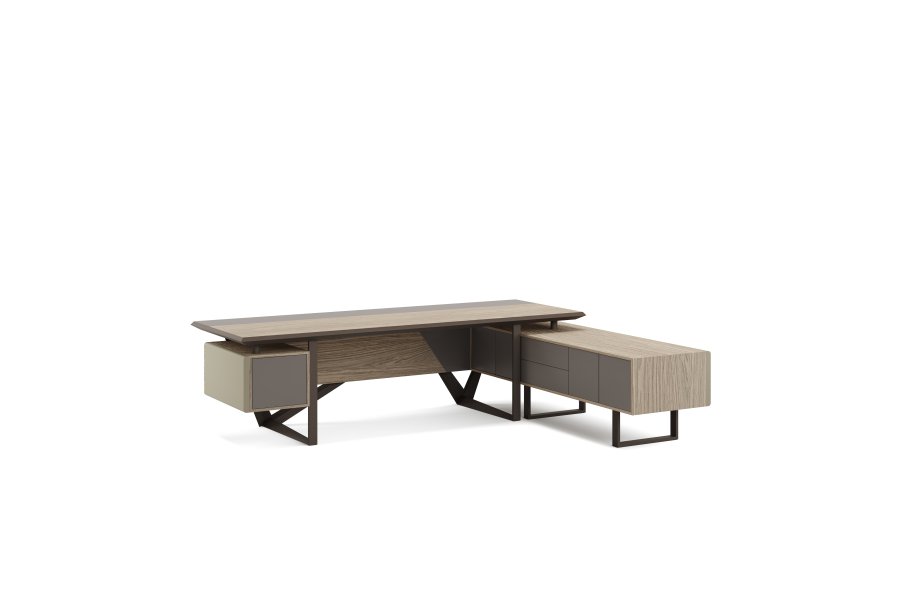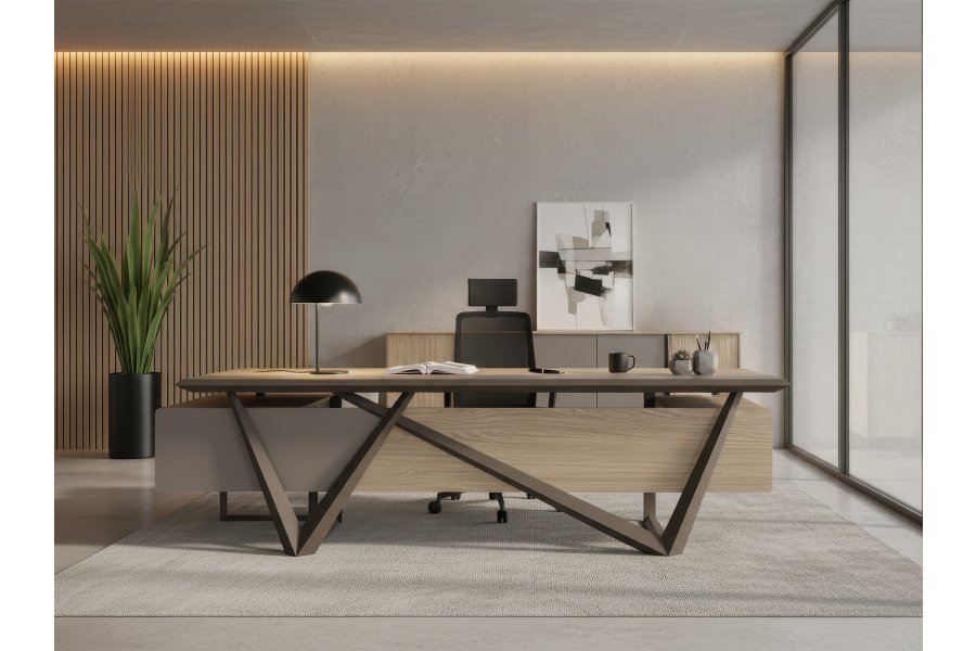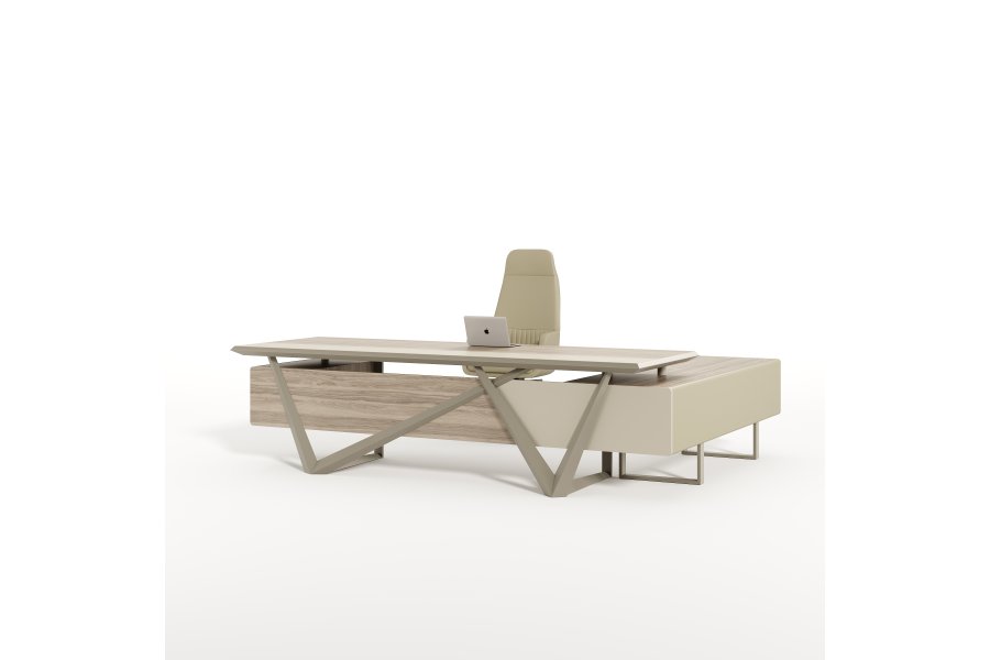 Ofis tasarımında öne çıkan, yeni tasarım ofis mobilyaları ile iş alanlarınıza şıklık ve fonksiyonellik katıyor. Özel tasarım metal kullanımı, çift renk tabla yapısı, ve dikkat çekici detayları ile Valens Makam Takımı, ofislerinize prestij ve şıklık getiriyor.