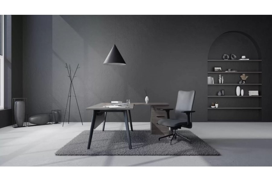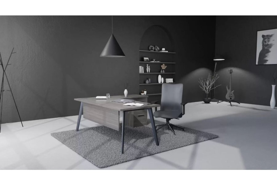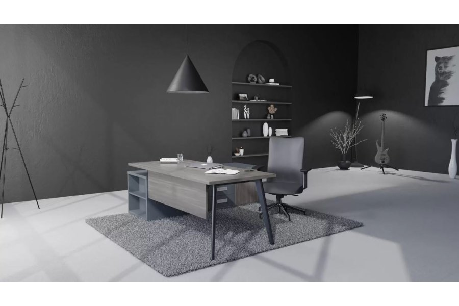 Tabla 30 mm, ön perde 18 mm melamin olup; kenarları 2 mm PVC bantlıdır. İki ayak arasında kablo taşıyıcı görevi gören teleskobik