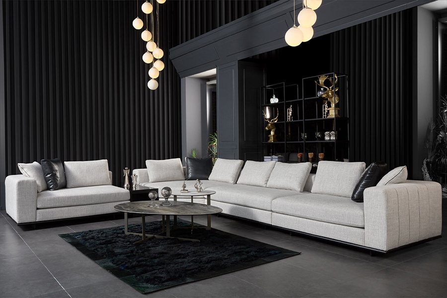 Colette köşe koltuk, Modoko’da modern ve lüks köşe koltuk arayanlar için tasarlanmış, geniş oturumlu ve güçlü hatlara sahip bir modeldir. Kalın kolları, derin oturumu ve siyah detaylarla kontrastlanan açık renk kumaşıyla, modern loft ve şehir dairelerinde mimari bir görünüm oluşturur. Rahat sırt minderleri ve yumuşak oturum yapısı, günlük kullanımda da misafir ağırlarken de yüksek konfor sağlar.