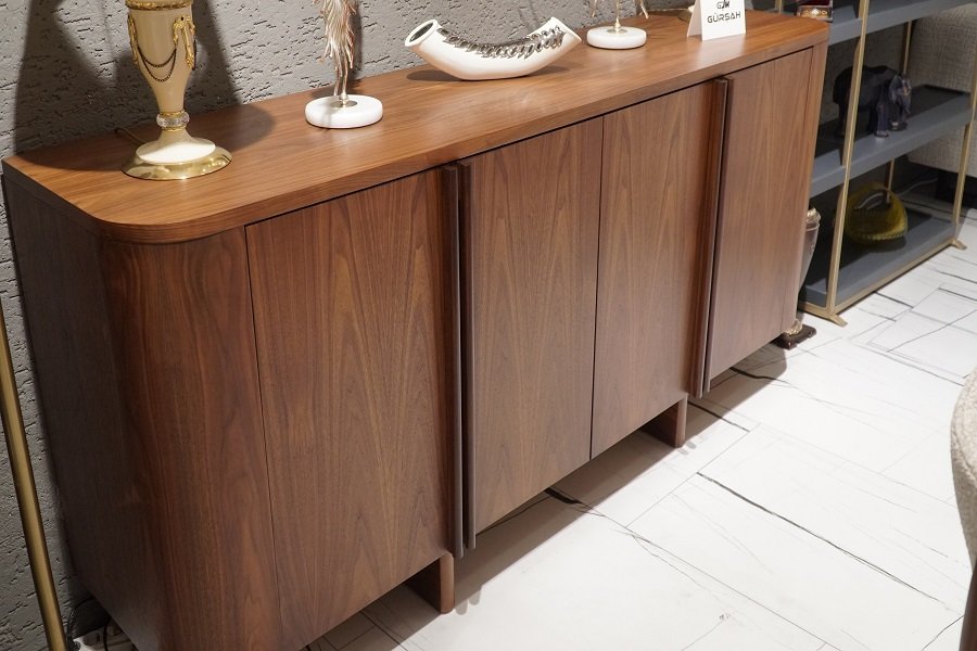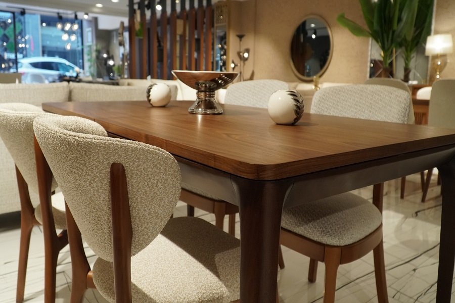 %100 MDF, contra ve Gürgen ahşap, polyester cila, açılabilir masası ile son derece kullanımlı, Amerikan ceviz kaplamalı, Yemek odası takımı.