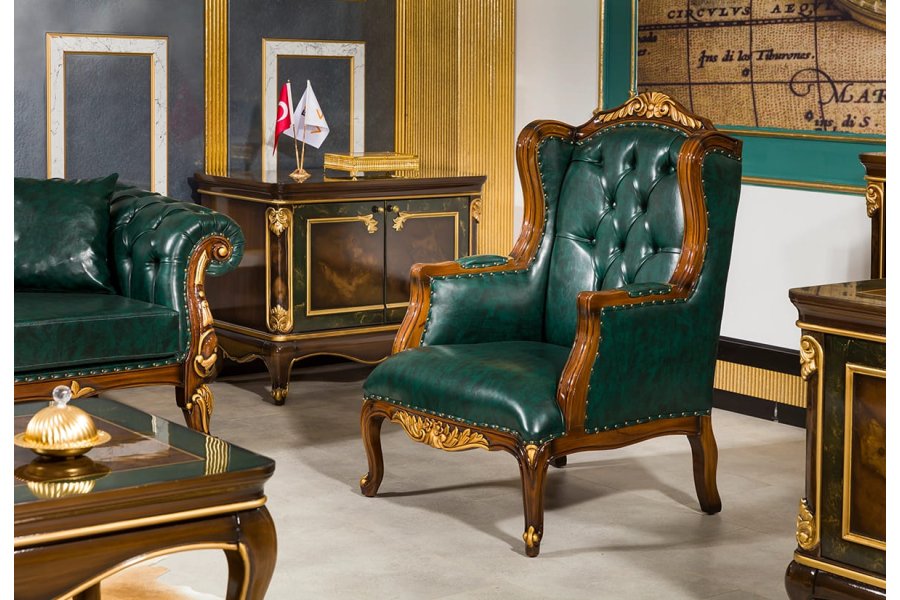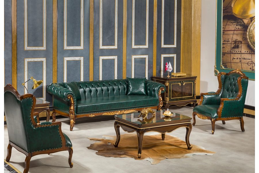 • Yeşil deri oturma grubu: Güven, istikrar ve prestij hissini pekiştirir.