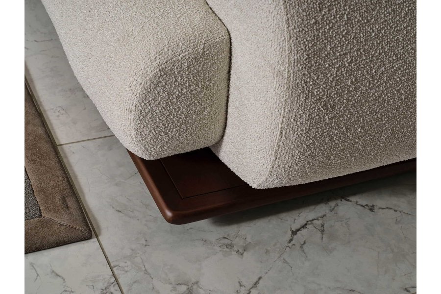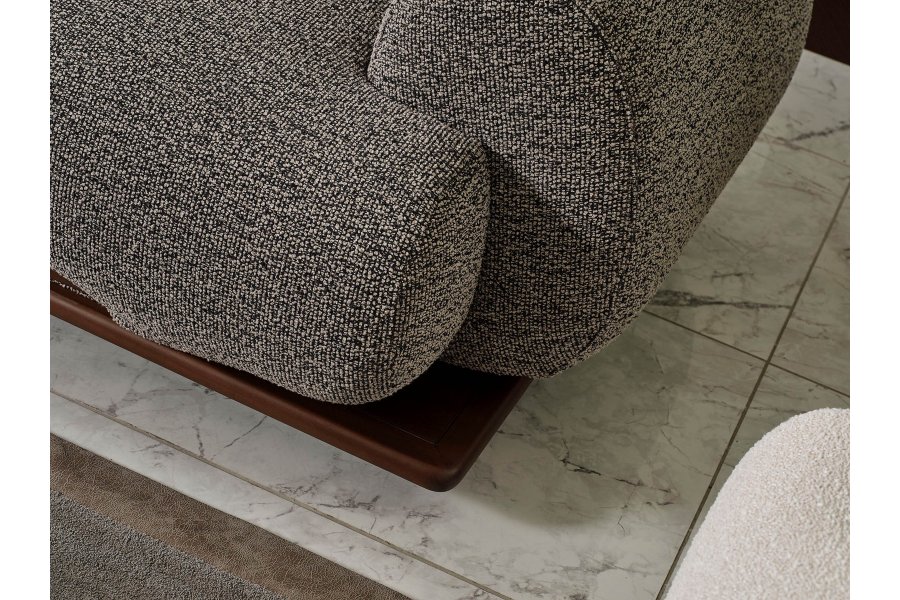 Alçak ahşap kasa yapısı ve organik formlardaki kolçak tasarımlarıyla hem şıklığı hem de üst düzey oturum konforunu bir araya getirir.