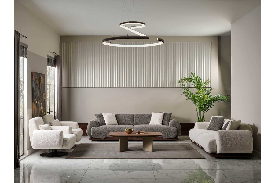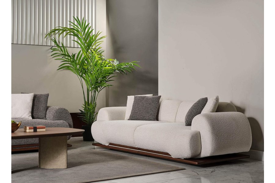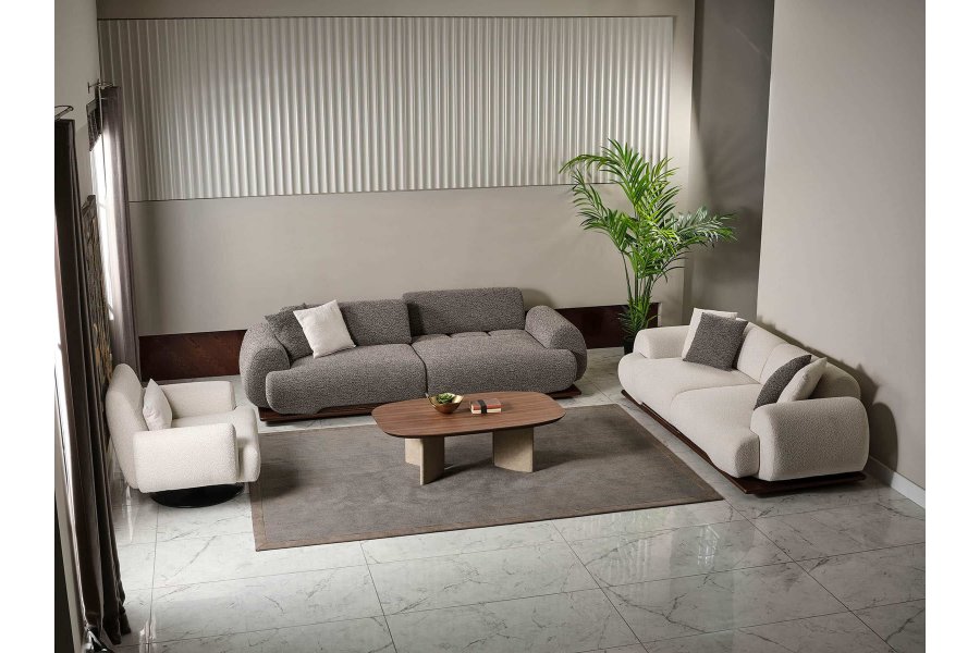 Almeria Koltuk Takımı, yumuşak hatları ve modern buklet kumaş dokusuyla yaşam alanınıza sofistike bir dokunuş katar.