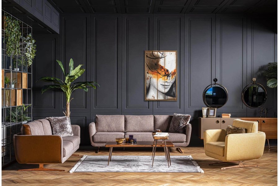 Done Koltuk Takımı, ham ahşap detayları ve deri ile kumaşın asil birlikteliğini salonunuzun merkezine taşıyan, endüstriyel-modern stilin zirvesinde bir tasarımdır. Tasarımı yerden bir sanat objesi gibi yükselten geniş ahşap kızak ayakları ve gövdedeki taba deri geçişleriyle yaşam alanınıza hem karakter hem de prestijli bir sıcaklık katar.