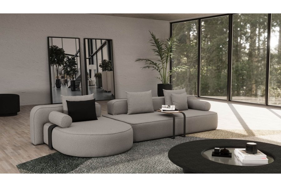 - Konfor Detayları: Derin oturum alanını destekleyen yumuşak sırt minderleri ve tasarımı tamamlayan silindirik (bolster) kol dayama üniteleri