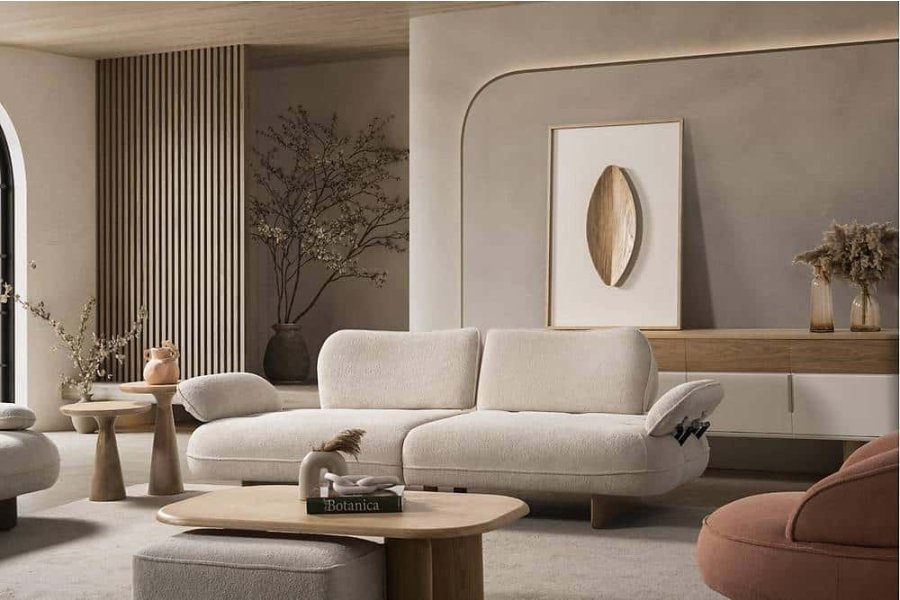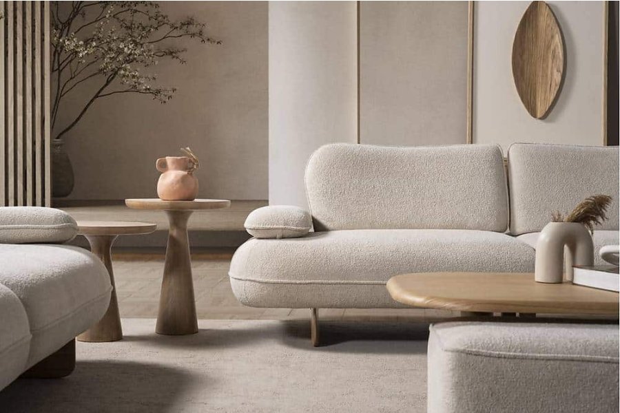 • Materyal ve Doku: Mekana aydınlık katan krem tonlarında, dayanıklı ve trendlere yön veren premium buklet dokuma kumaş uygulaması