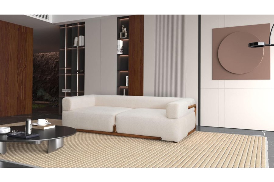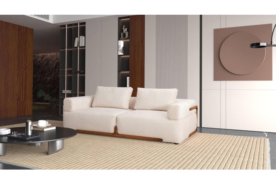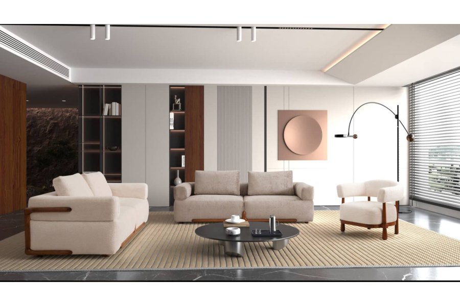 Savi Koltuk Takımı, özgün tasarım dilini sıcak ceviz detaylarıyla buluşturarak salonunuzda hem sofistike hem de doğal bir atmosfer yaratır.