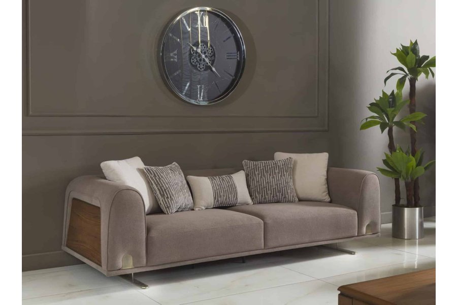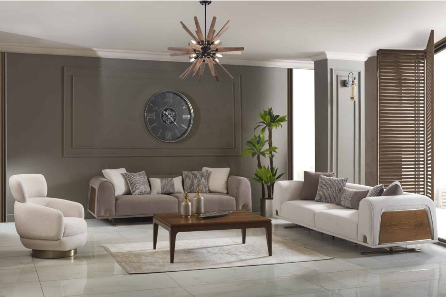 Zambia Koltuk Takımı, vizon ve beyazın dingin uyumunu masif ahşap detaylarla mühürleyerek yaşam alanınızda sofistike bir atmosfer yaratır. Modern silüeti kavisli amorf hatlarla taçlandıran bu model, rasyonalizmi sanatsal bir şıklıkla salonunuza taşır.