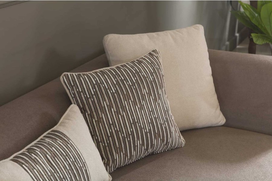- Ritmik Kırlent Sentezi: Dikey çizgili dokular ve vizon tonlarındaki geçişlerle oturum konforunu görsel bir zenginliğe dönüştüren kırlent kurgusu